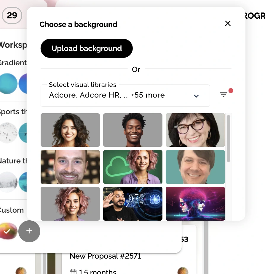 - Or select a background from the available visual libraries.