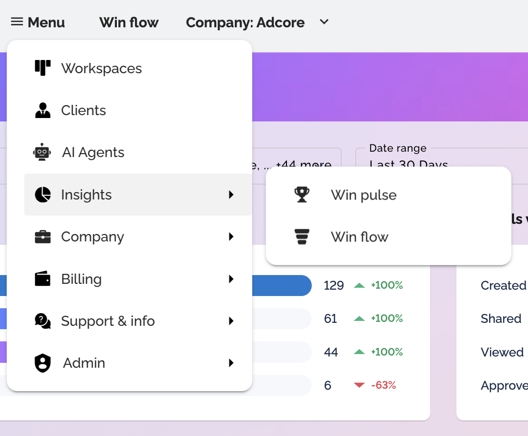- In the Business Portal, go to Menu → Insights → Win flow.